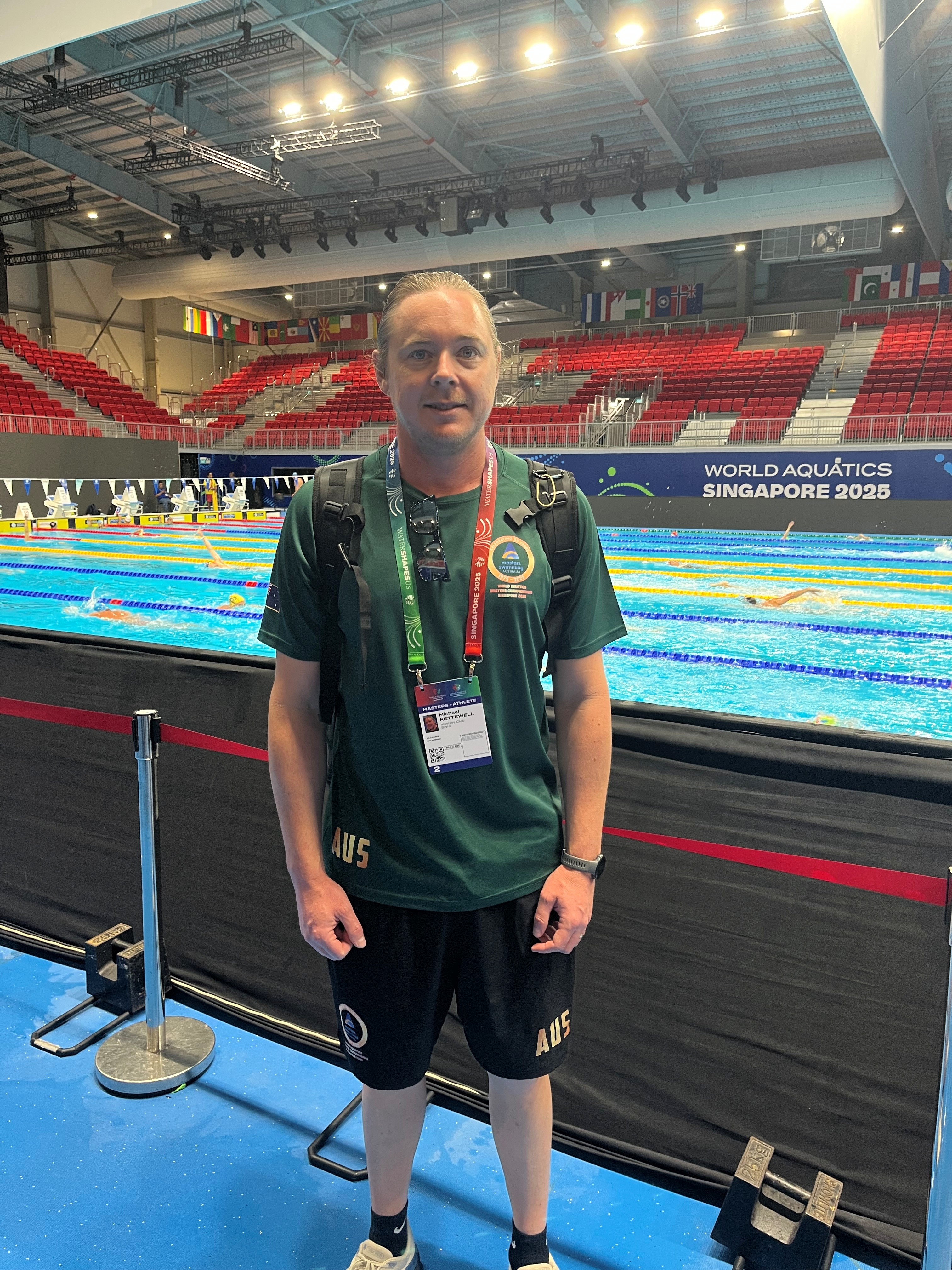 The spark for competition came from watching his son, Hayden, race. Realising he had a “competitive void” to fill after retiring from football, Michael entered his first meet at the Brisbane Northside Masters swim meet at the Valley Pool in August 2023. Though it was his first exposure to competitive swimming, the atmosphere immediately resonated with him.